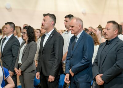 Posebnu zahvalnost upućujemo bjelovarsko-križevačkom biskupu, monsinjoru Vjekoslavu Huzjaku, koji je zajedno s velečasnim Matijom Vonićem blagoslovio našu školu i sve okupljene. Njihova prisutnost i blagoslov dodatno su oplemenili ovaj svečani trenutak i dali mu posebnu duhovnu dimenziju.