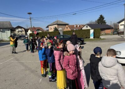 U utorak, 17. 2. 2026. učenici naše škole 1. do 4. razreda došli su maskirani u školu kako bi obilježili tradicijske običaje našeg kraja. Bilo je tu policajaca, župnika, vještica, bakica, šerifa, anđela,... Okupili smo se ispred škole i veselo krenuli ulicom do Doma...