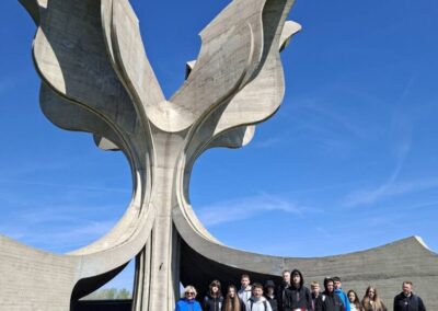 Naši osmaši zadnjih su se mjeseci bavili temom Drugog svjetskog rata na satovima Povijesti i kao jedan od predviđenih zadataka, planirana je terenska nastava u Spomen područje Jasenovac. Izabrali smo termin početkom travnja, po povratku s proljetnih praznika. Sudjelovalo je svih trinaestero učenika osmog razreda pod vodstvom prof. povijesti i geografije Milivoja Dretara i razrednice Vesne Kušćer Čisar, a terensku nastavu financira Ministarstvo znanosti, obrazovanja i mladih Republike Hrvatske.